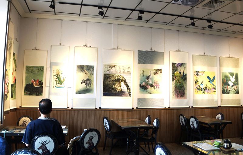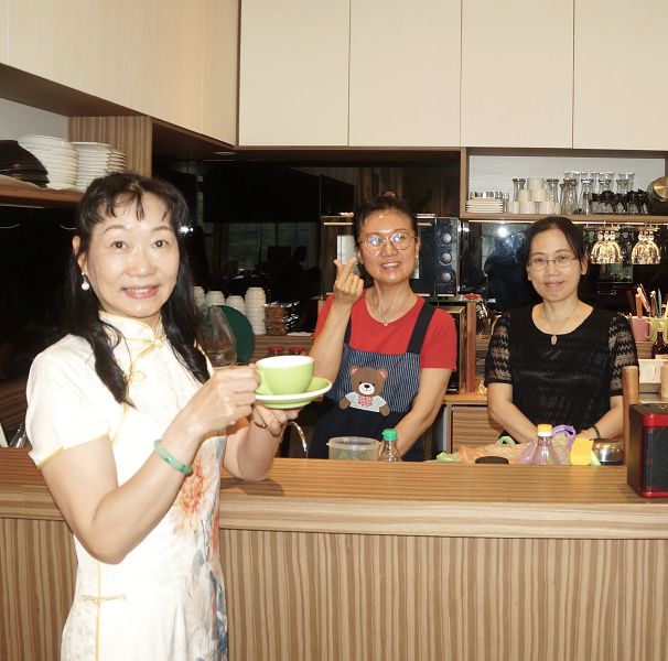 台藝書畫學會理事長葉蘭香表示,「迪兒咖啡館」是他的學生劉士鳳與其姊姊劉育妏共同經營,姐姐劉育妏原在餐飲業、妹妹劉士鳳在壢新醫院任職,為了方便照顧90多歲的父親而選擇回家創業,將原來的透天厝,改為蔬食咖啡館,館內所有飲、食皆是姊妹親製,兼顧健康與美味。此外,因劉育妏擅長爵士鼓、妹妹劉士鳳專精古箏演奏外,又喜愛繪畫而成為她繪畫班學生之一,表現相當傑出亮眼!同時「迪兒咖啡館」還提供書畫、音樂人可隨時現場揮毫、演奏場地,成為與眾不同既賞心悅目又悅耳的藝文場館。