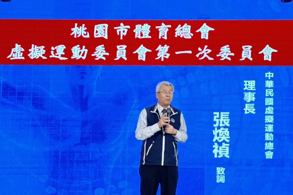桃園市體育總會虛擬運動委員會理事長張煥禎致詞。