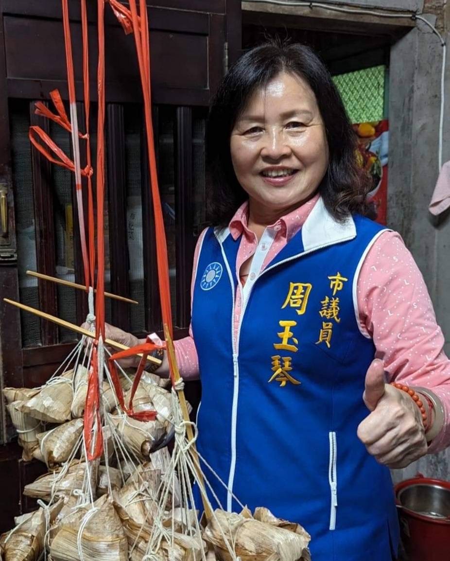 桃園市議員周玉琴表示,她們家每年端午節包粽子都是由婆婆負責做,打從浸泡糯米、選洗粽葉、準備各種餡料,都由經驗豐富的婆婆親自操辦。