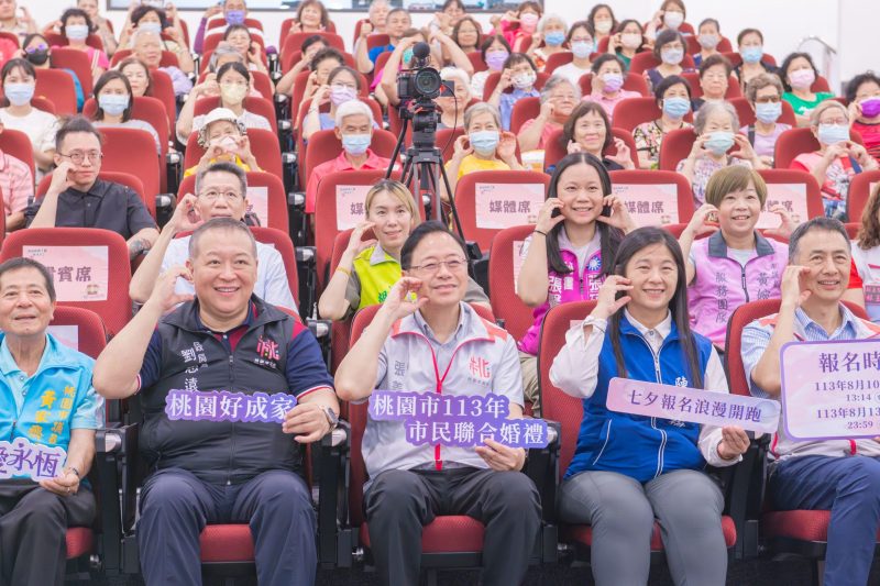 張善政表示,桃園是成長中的城市,有許多年輕人在此定居,並在桃園結成連理、組成幸福家庭,今(113)年桃園市民聯合婚禮將於10月26日舉行,線上報名時間自七夕情人節8月10日13時14分至8月13日23時59分止,其中一方設籍桃園市的新人皆可報名,開放80對新人名額,市府也提供法國巴黎雙人來回機票等豐富獎項,歡迎各位新人把握機會踴躍報名,共享幸福喜悅。