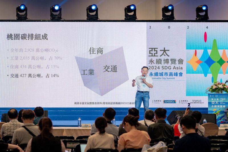 【記者徐玉英桃園報導】桃園市副市長蘇俊賓日前前往臺北世貿展覽館,出席「2024亞太永續博覽會」,以「桃園x淨零全局觀」為主題,分享桃園市如何透過跨域思維及提出複合式減碳解方,為2050桃園淨零佈局。會中蘇俊賓也與日本北九州市副市長大庭千賀子針對城市減碳議題進行交流與經驗分享。大庭千賀子副市長對於桃園分享的碳排考量作為城市發展上位政策,表示印象深刻,主動表示期待兩個城市能夠進一步的交流。