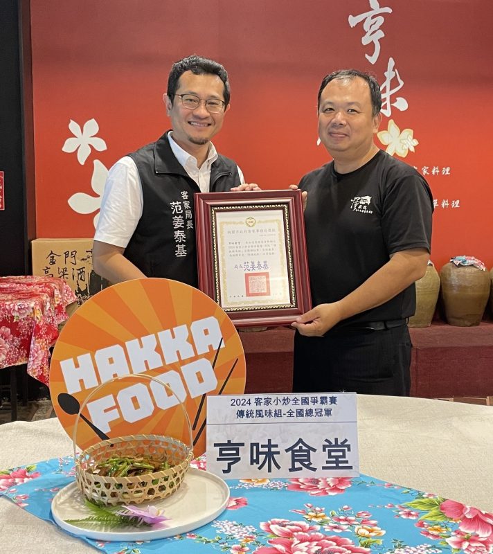 客家委員會主辦之2024客家小炒全國爭霸賽分為「傳統風味組」及「創意風味組」,歷經北、中、南、東4區初賽,「傳統風味組」之北區初賽由位於桃園的亨味食堂拿下冠軍,這次又在全國總決賽奪冠,老闆范德忠興奮地表示,之前連續3年參賽雖未獲獎,但仍四處請教、至其他餐廳用餐,累積不少心得且不斷嘗試,這次憑著新鮮的在地食材與精準的刀工、火候、調味,終於在比賽中一舉奪冠;除了得獎的客家小炒,今後也將端出更多深具客家味的佳餚以饗大眾。