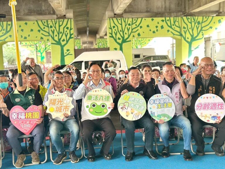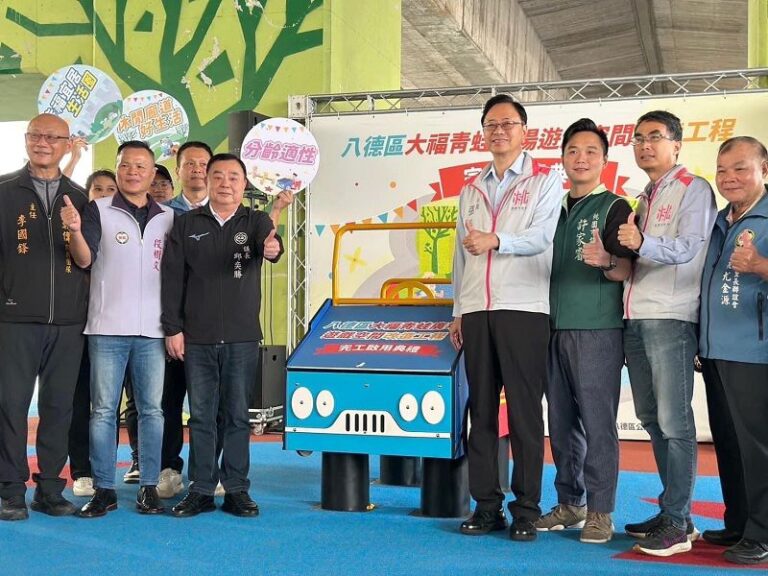 【記者鍾陽正桃園報導】桃園市政府與八德區公所為有效活化橋下空間,將原國道二號橋下的既有遊戲場,依符合衛福部安全規範,投入總工程經費約565萬元進行更新改造成「大福青蛙廣場遊戲空間」,並於4日下午舉行完工啟用典禮,由市長張善政與市議會議長邱奕勝、工務局長汪在宙、市議員段樹文、許家睿、八德區長蔡豊展等共同進行揭幕啟用儀式。