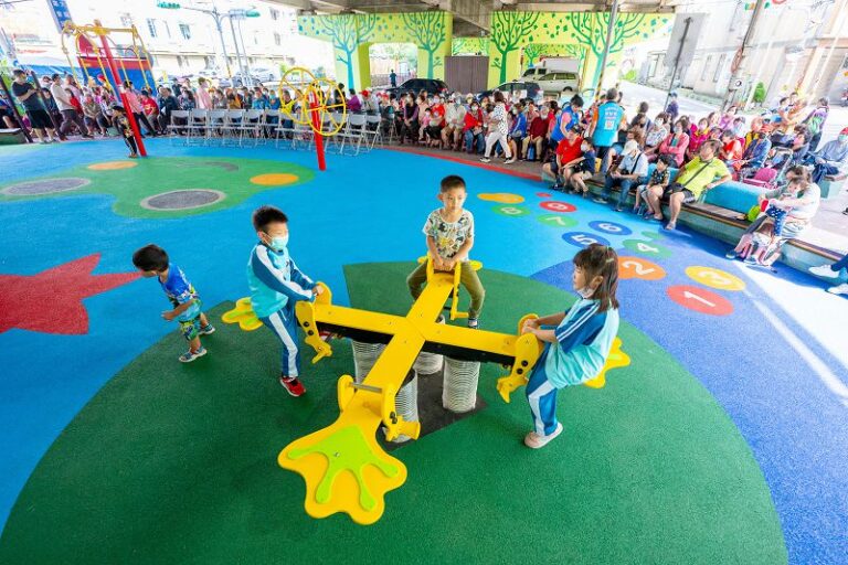 蔡豊展表示,本工程基地面積約500平方公尺的橋下空間,整體工程配合原有空間輪廓以「青蛙」為主題,用青蛙、荷葉、小鴨等素材圖案構成池塘生態意境,並依2至12歲孩童遊憩需求新設各種造型的特色遊具,為遊戲場增添趣味,為孩子們打造充滿童趣的遊樂園,不但使橋下空間充份有效運用及提高使用率,也為民眾提供優質的遊憩活動場域,歡迎市民朋友來體驗。