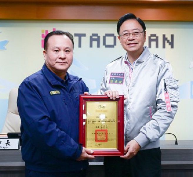 【記者吳惠民桃園報導】桃園市長張善政18日上午主持市政會議,接受警察局呈獻榮獲行政院113年軍民聯合防空(萬安47號)演習「全國特優」獎項。