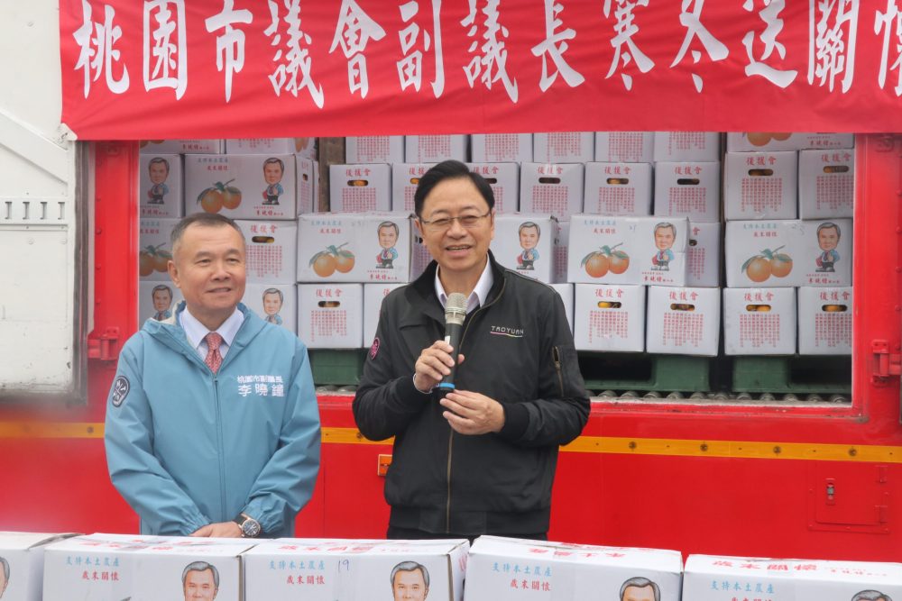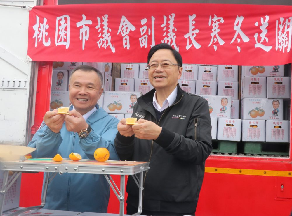 【記者鍾陽正桃園報導】桃園市議會副議長李曉鐘熱心公益不遺餘力,自96年起連續17年向雲林古坑果農訂購萬斤柳丁,由產地直送桃園捐贈給桃園弱勢家戶及社福機構。今年特於20日上午在皇家薇庭婚宴會館舉行捐贈儀式,由市長張善政代表接受,並回贈感謝狀,感謝其長期不間斷的善心義舉,讓受惠的弱勢團體在寒流來襲下得到溫暖。他也品嘗現切柳丁味道,頻頻點頭稱讚柳丁品質佳。他表示,副議長很有心,採購柳丁不但關懷弱勢,也照顧到農民生計,一舉數得,幫助了許多人。社會局長陳寶民、桃園區長許敏松及各受贈單位代表等皆一同出席。