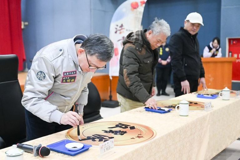 【記者吳世傑桃園報導】桃園市副市長王明鉅日前在市府警察局副局長劉印宮、比賽評審廖大華及江金晃等人陪同下,前往市府警察局大禮堂出席114年第2屆青少年「法網『揮揮』、『書』而不漏」書法比賽活動。