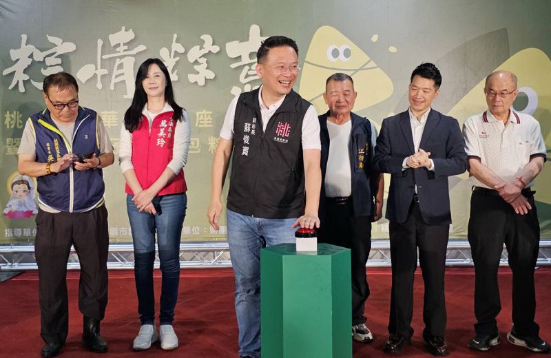 【記者吳惠民桃園報導】桃園市副市長蘇俊賓日前在總統府副秘書長何志偉、立法委員萬美玲、議員陳美梅、余信憲、于北辰、黃瓊慧、張碩芳、市府民政局局長劉思遠、蓮華寺董事長江衍灝、桃園信用合作社理事主席蘇家明、桃園區里長聯誼會總會長吳宏泰等人陪同下,前往桃園區出席「粽情粽意-桃園蓮華寺安座紀念暨端午親子公益包粽活動」。