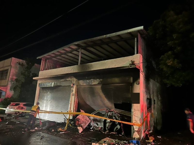 根據桃園市消防局第二大隊新屋分隊通報,事故現場為一輛行駛中的小客車不慎衝入民宅後起火,火勢迅速波及住家與周邊車輛。燃燒面積合計達21平方公尺,起火車輛的引擎室與駕駛座、民宅一樓客廳家具、一輛停放門前的靜止小客車、以及一輛住宅旁機車均不同程度毀損。
