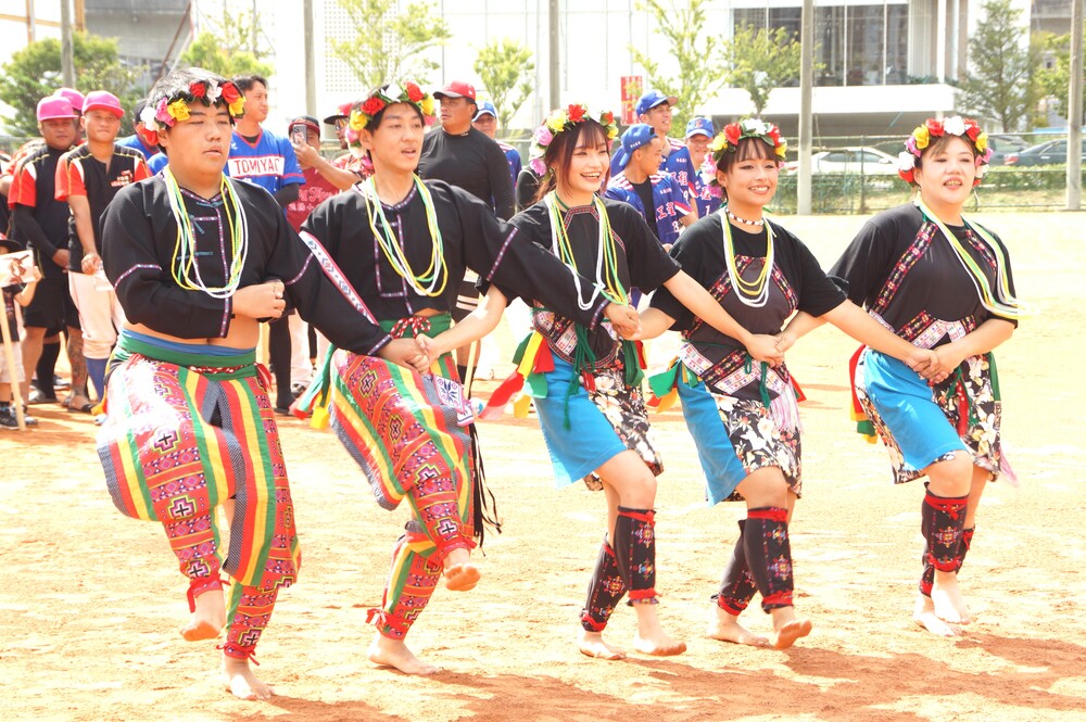 桃園市原住民族運動會全國慢速壘球市長盃錦標賽開幕賽前,由原住民表演精彩傳統歌舞。(記者徐玉英攝)