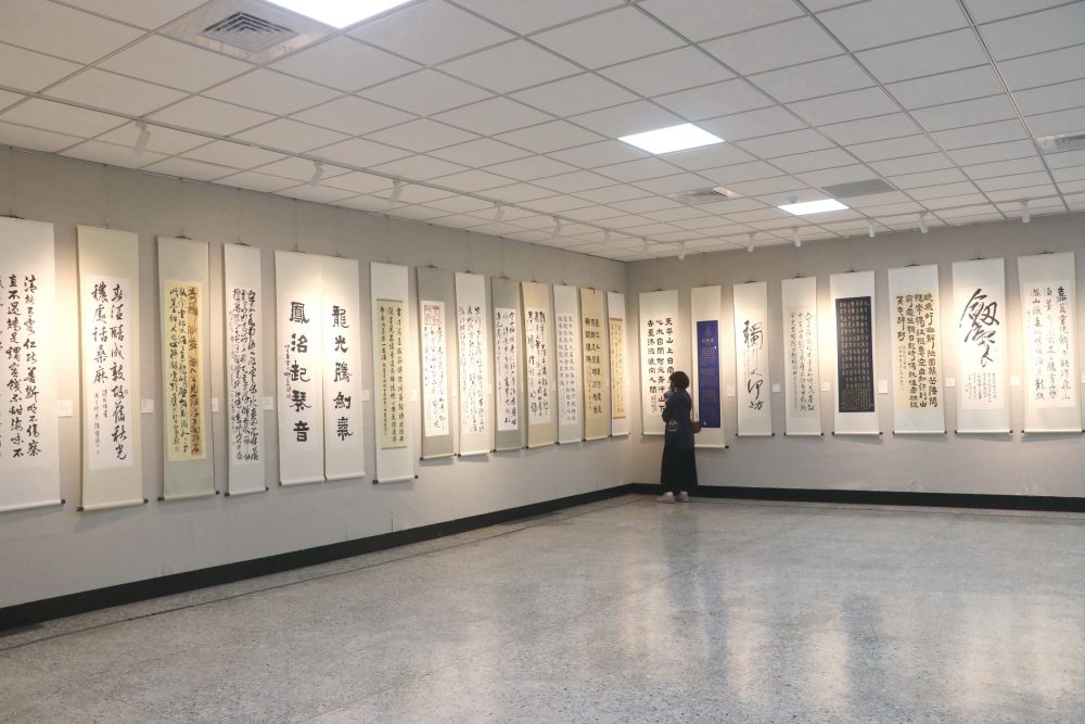 中華書道學會2025國際邀請暨會員聯展在桃園共展出146件精美作品。(記者鍾陽正攝)