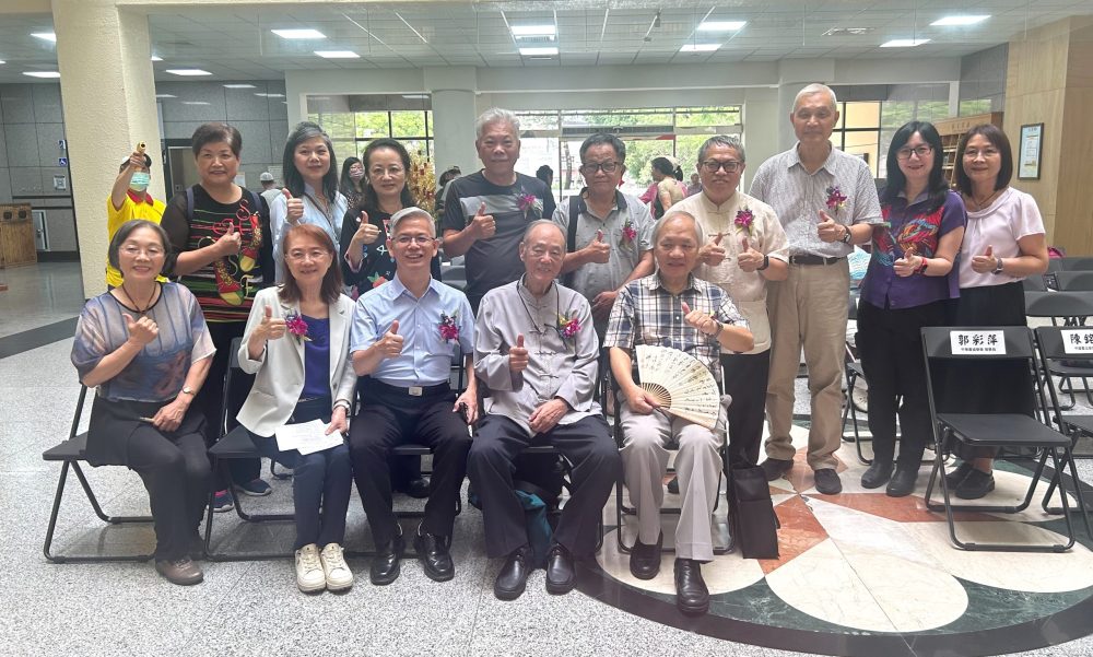 中華書道學會理事長郭彩萍(前中)與全體人員大合影。(記者鍾陽正攝)