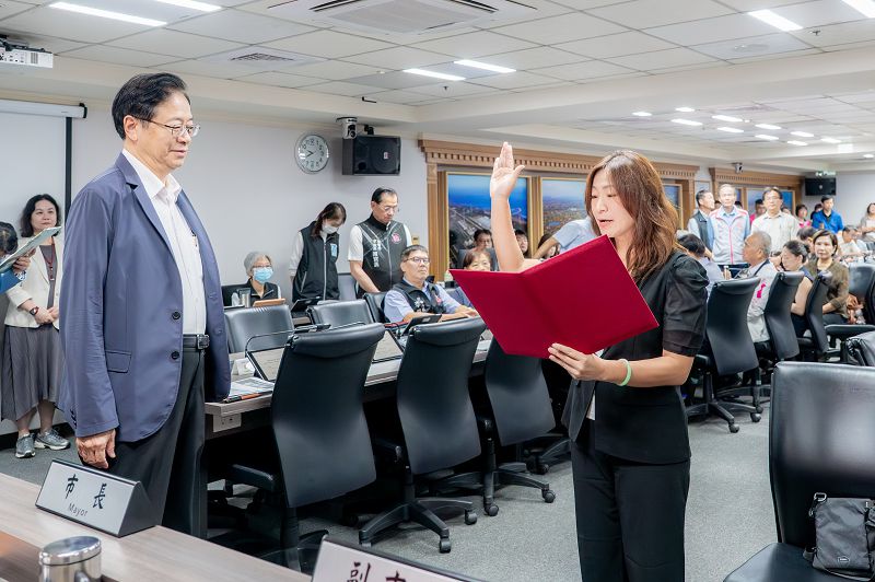 新任桃園市觀光旅遊局局長陳靜芳宣誓就職。