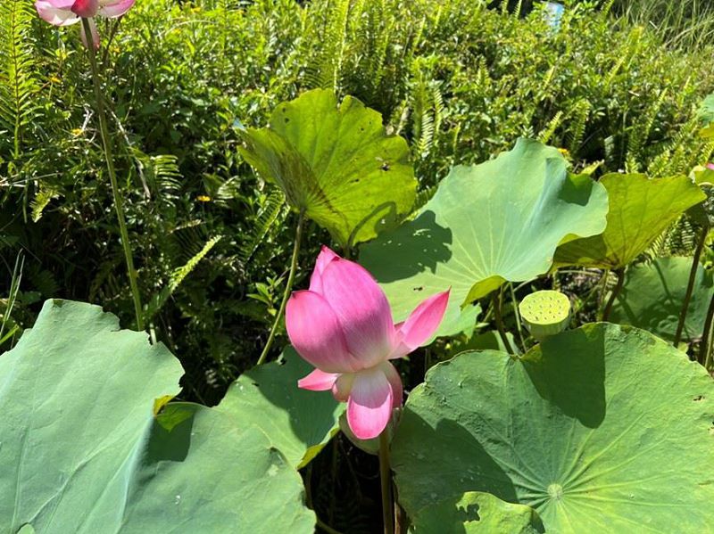 桃園山豬湖園區部分花苞也陸續形成,預計將於8月初進入盛開期,屆時園區將呈現水面綠葉婆娑、粉白花朵交織的自然景致,是親近自然、賞荷攝影與生態觀察的絕佳時機。