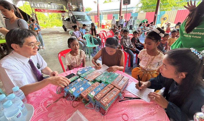 此次出訪,在柬埔寨參議院第二副主席狄諾顧問 H.E. OKNHA Chen Su Yueh 勛爵的協助下,由宏觀混凝土實業公司持續支持深耕當地醫療合作,更與玉山柬埔寨子行 UCB 攜手合作,於8月11日共同舉辦「臺柬國際公益活動」。活動地點選在干丹省的 New Smile of Hope Children Association 育幼院,為當地兒童與民眾提供健康檢查與基礎診療服務,並捐贈藥品及日常生活物資。