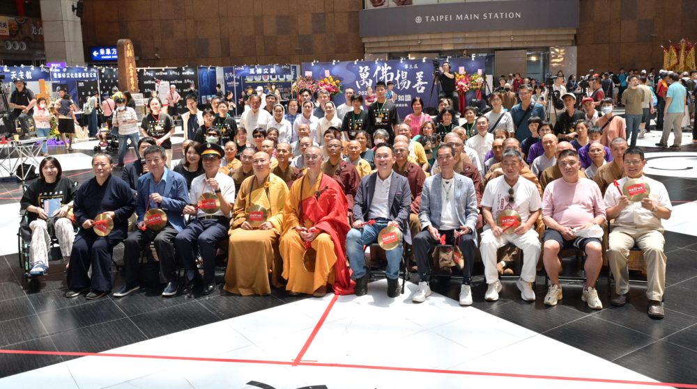 【記者鍾陽正台北報導】台灣宗教聯合會暨僧伽林楠西萬佛寺共同舉辦的「第三屆萬佛揚善.百萬神知識」活動,於16、17日二日在台北車站一樓大廳登場,並於16日上午舉行啟動儀式,由桃園市副市長蘇俊賓、桃園大廟景福宮主任委員簡征潭、台灣宗教聯合會執行長、楠西萬佛寺方丈法藏大和尚、北港朝天宮董事長蔡咏鍀、桃園心善寺住持惠謙法師、天主教林之鼎神父、台北車站站長何彬豪、藝人王中平等人以敲鑼方式為活動啟幕,場面莊嚴隆重熱鬧。
