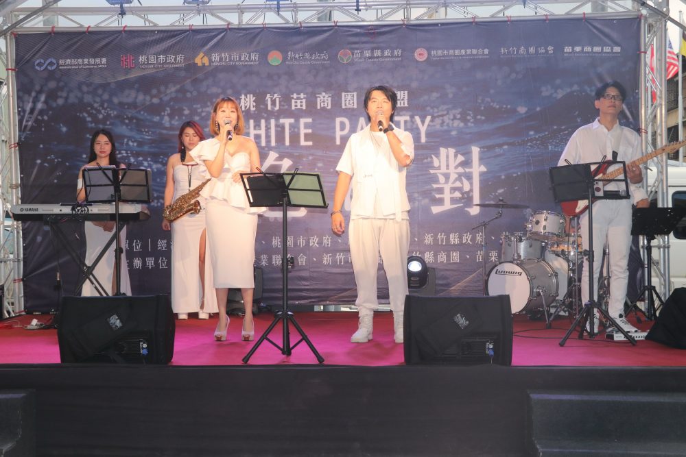 「白色派對」音樂晚會融合音樂、美食與文化,營造輕鬆歡聚的氛圍,不僅邀請麥帕蒂樂團帶來輕快音樂表演,來賓們也以白色服裝相襯,共同營造浪漫氛圍,展現商圈交流的新樣貌,氣氛熱鬧溫馨。現場賀客雲集,有桃園市青年局長侯佳齡、平鎮區長蕭巧如、市議員舒翠玲、王珮毓、陳韋曄、劉仁照、各里長及三地各商圈、各產業代表等,展現桃竹苗的實力還有合作的完整性。