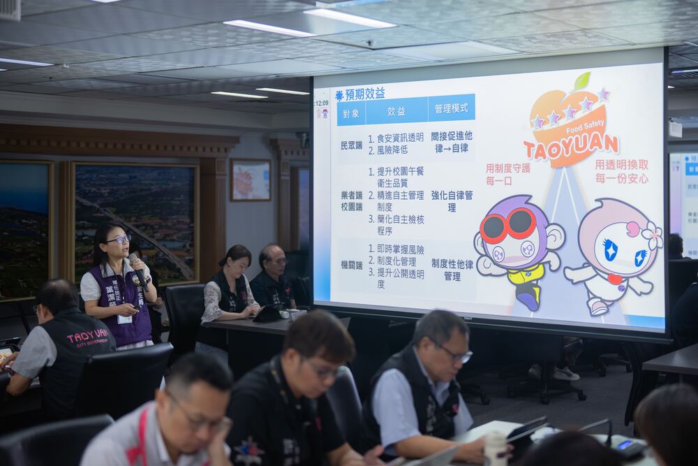 衛生局指出,目前桃園共有113家校園自設廚房及14家團膳工廠,為強化食安監管,市府將查核頻率提升為自設廚房1年2次及團膳工廠1年4次,並於寒暑假開學前進行輔導稽查。此外,市府自今年起推出「自主食品衛生電子巡檢」及「食安評價星級評等」,要求業者於每日開工前即時上傳場區環境、從業人員健康狀況、衛生行為及服裝儀容等自主檢查紀錄與照片;後台系統得即時監控並輔導改善,以強化自主管理並提升資訊透明度。