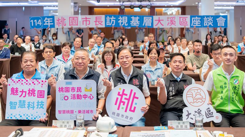 【記者鍾陽正桃園報導】桃園市長張善政日前率領市府團隊及大溪區長徐景揚、市府各局處代表及各里長陪同下,前往大溪區出席「114年桃園市市長訪視基層大溪區座談會」。