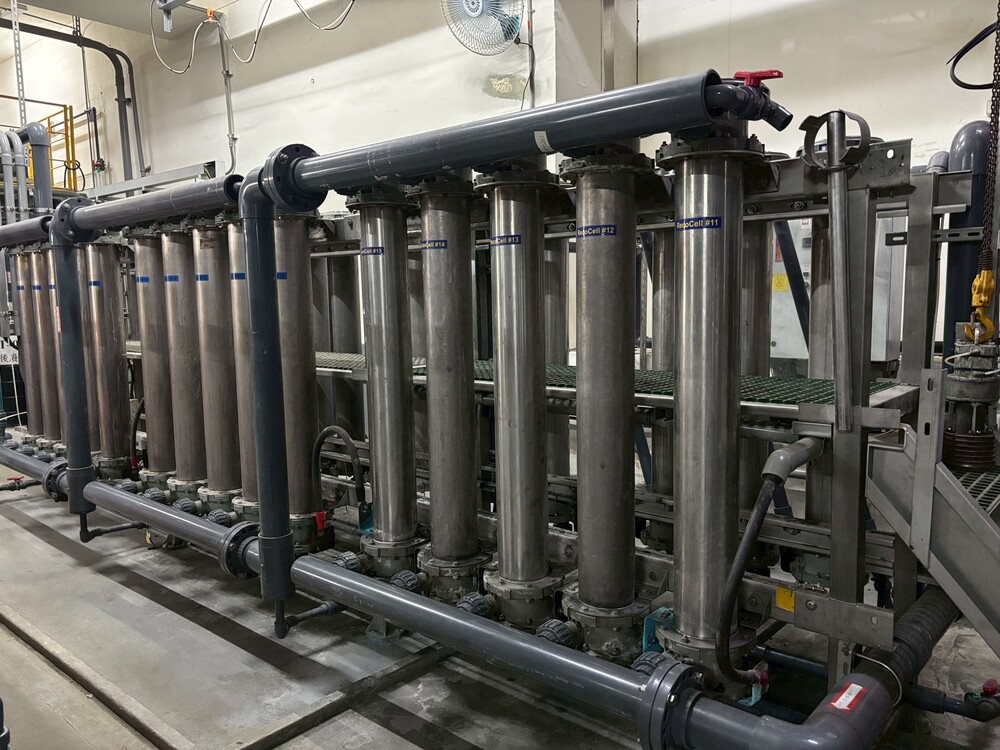 另一方面,友達光電早在2015年即建置全台首座 「製程用水全回收零排放系統」,廢水回收率達100%,為高科技業立下標竿。此次在市府輔導下,友達再投入 5,000萬元,導入「原物料回收與高導電度處理設備」,此技術與工研院合作開發,係將高導電度廢液中離子轉化成鹽酸(HCl)及液鹼(NaOH),循環回用到廠內公共系統利用;可帶來酸鹼回收利用及固體廢棄物減量並提高回收水量,大幅降低操作成本,並降低全廠碳排。該公司導入「原物料回收與高導電度處理設備」後,每日可處理廢液中 600公斤廢棄離子,整體操作流程可提升離子回收率達 75%以上,減碳量約883公噸/年CO2排放。未來,該技術也將推廣至光電元件製造業,協助產業鏈全面提升循環利用效益。