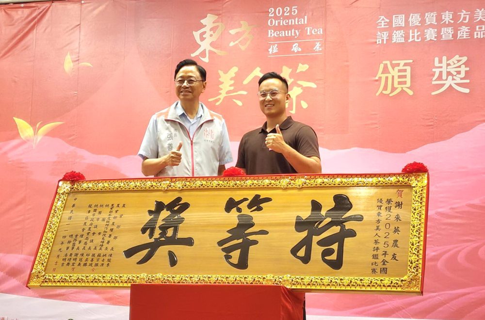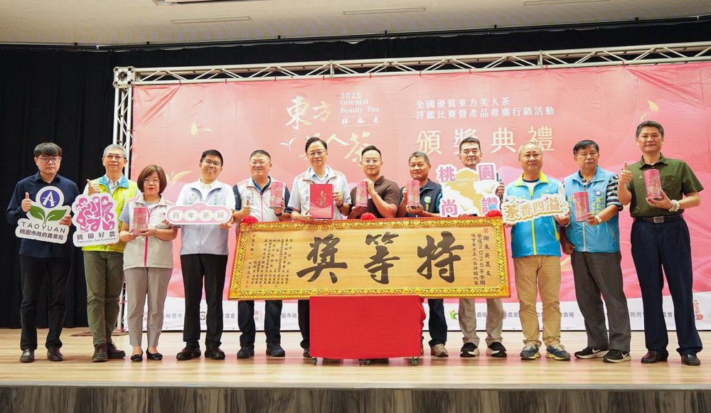 陳冠義表示,2025年全國優質東方美人茶評鑑比賽於桃園市龍潭區農會舉行,吸引來自新北、桃園、新竹、苗栗、臺中及南投等地共391件參賽作品角逐。今年由龍潭區文新製茶廠的謝來英勇奪最高榮譽「特等獎」,為桃園締造連續3年奪冠的佳績,再度打響桃園優質農產品牌。感謝在地茶農用心付出,市府也會繼續成為農友們的後盾,積極推廣智慧茶園管理,並進行即時監測及災害預防,輔導桃園智慧農耕團,解決茶產業從業人員短缺及高齡化等挑戰,期盼在政府相關部門與農民攜手合作下,讓桃園茶產業永續發展。