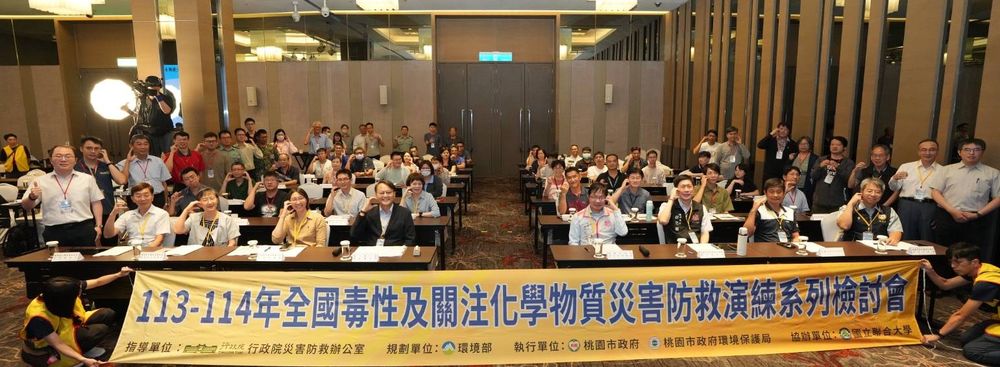 【記者徐玉英桃園報導】桃園市政府與環境部化學物質管理署於日前共同舉辦「113-114年度全國毒性及關注化學物質災害防救演練系列檢討會議」,由環境部次長謝燕儒與市府秘書長溫代欣共同主持。會議邀集中央與地方防災單位代表,包括陽明交通大學教授林正鄰、化學物質管理署代理署長陳淑玲及行政院災害防救辦公室參議何孟卓等人,針對演練成果進行專業指導,環境部並頒發感謝狀予桃園市環保局局長顏己喨與消防局簡任技正戴明杉,以肯定市府團隊此次演練的專業付出。