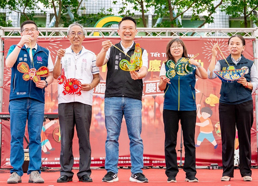 【記者徐玉英桃園報導】桃園市副市長蘇俊賓日前在市府婦幼局長杜慈容、市府顧問暨新住民聯合服務中心執行長李紹偉、龜山區區長張嘉平、內政部移民署北區事務大隊桃園市服務站主任黃英貴、桃園市越配權益促進會榮譽理事長馮玉英、現任理事長潘昀樂、桃園市新住民國際關懷協會理事長范詠甯、桃園市東南亞藝文教育創新暨研究協會理事長范美幸及桃園市新住民協會理事長林桂金等人陪同下,前往龜山區出席「越南中秋慶典活動」。