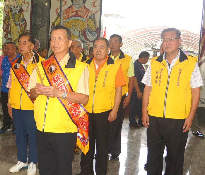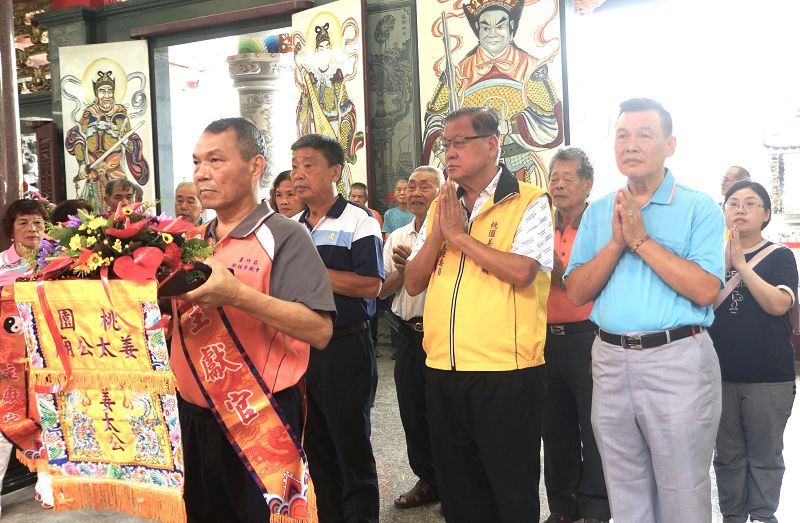 【記者吳惠民桃園報導】位於桃園市八德區長興路360巷31弄100號全台最大姜太公廟《桃園姜太公廟》為慶祝姜太公祖3164周年聖誕千秋,於9月20日上午開始至9月24日循例舉行系列祝壽活動。24日在姜太公祖後代姜姓、邱姓…等各地宗親會代表及南崁五福宮主委邱進賢、宵裡玉元宮主委段樹文(桃園市議員)、各友宮寺廟代表和社會賢達人等陸續前來團拜祝壽,中油公司油品行銷事業部執行長邱垂興、桃園營業處長杜瑩真與幹部,也受邀前來向姜太公三獻禮賀壽,均受到《桃園姜太公廟》主委邱守德、榮譽主委邱創良(前立委)、邱垂境(前桃園縣議員、前台灣石油工會理事長)及幹部的熱情接待。