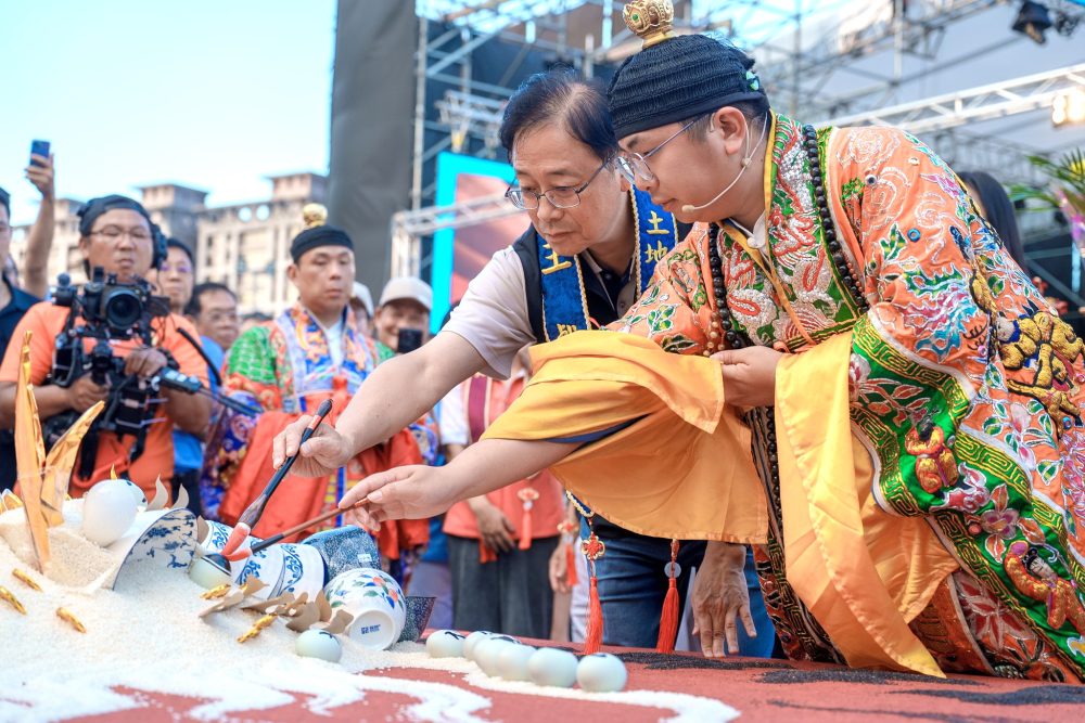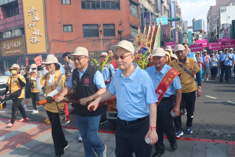 【記者鍾陽正桃園報導】桃園土地公民俗藝術節於27日下午熱鬧登場,由副市長蘇俊賓為市公扶轎,帶領266尊土地公神尊與3000名護駕人員的踩街隊伍,在景福宮鈞天社、玄勝龍獅團、北港大藝閣車及閩南文化節藝閣表演獲獎團體的沿途表演,一路氣勢磅礡、浩浩蕩蕩展開盛大的踩街活動至新永和市場主會場後,恭請神尊登上紅壇安座,並舉行「主獻大典」,由市長張善政擔任主獻官,以傳統三獻禮向土地公們表達敬意,並為450公斤白米打造的「米龍」點睛,象徵開啟吉祥,庇佑安康,也展現傳統工藝與宗教藝術的融合。最後,發送象徵好運與平安的壽桃「送福」給在場的信眾,全程氣氛熱烈、神聖又歡樂。文化局長邱正生、立法委員萬美玲、市議員陳美梅、張碩芳、桃園區長許敏松、桃園信用合作社理事主席蘇家明、桃園景福宮暨慈護宮主任委員簡征潭、平鎮廣隆宮主任委員陳萬得及各宮廟代表、各里長等均出席活動,共沐神恩。
