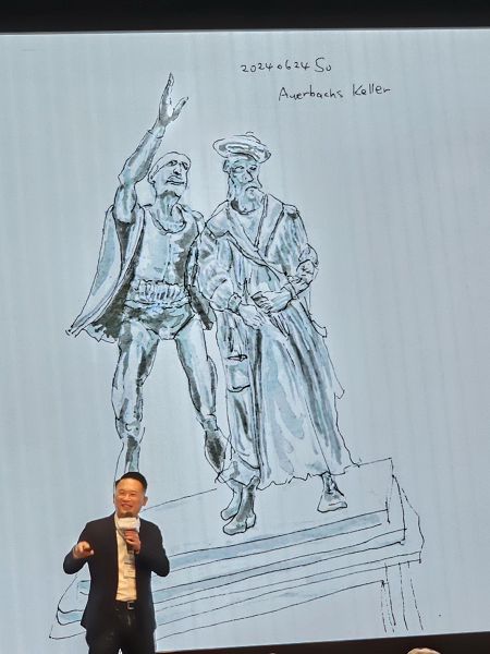 蘇俊賓最後以自己手繪的萊比錫車站和中壢車站做結尾,中壢車站的變遷正是桃園發展的縮影。桃園承載了超過原本城市設計的容量,甚至中壢車站因為超負荷使用,像是「霍爾的移動城堡」般,不得已的被迫一直加蓋,也曾被說是全台最醜的車站。車站的角色可以說是城市發展的縮影,歐洲最大的車站,萊比錫車站,早早定義了工業大城裡面的格局,正在進行鐵路地下化的桃園,未來即將有中路、桃園醫院、中原等車站,縫合的都市,是未來桃園轉型再進化的重要契機,他期待未來桃園邁向淨零城市發展中,不光只是「加法」,也必須適度導入「減法」的智慧解方。交替運用讓桃園的樣貌未來可以不一樣,將透過更多智慧解方,讓桃園走向真正的淨零城市。