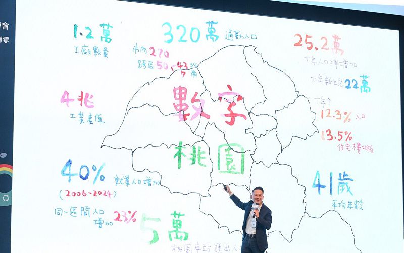 蘇俊賓說明,過去18年間桃園就業人口成長40%,高於人口成長的23%,顯示移入人口與產業需求緊密相扣;建築樓地板面積的成長速度甚至超越人口成長率,顯示桃園已成為移居與投資的重點城市。面對發展壓力,城市不僅要追求經濟產值,更要思考如何兼顧環境與生活品質。