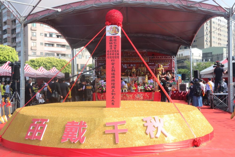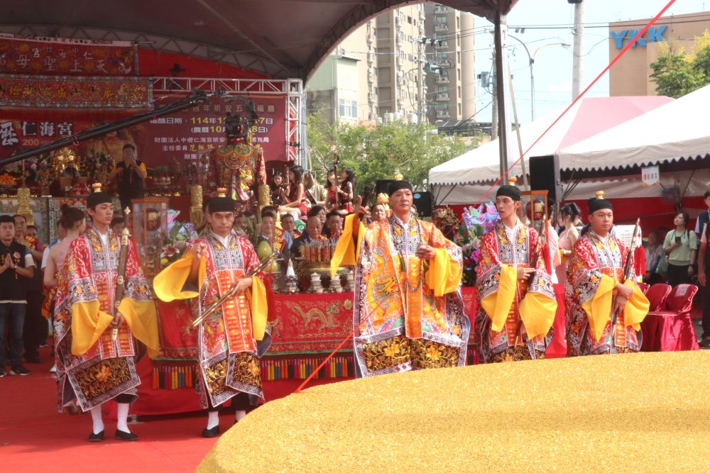【記者鍾陽正桃園報導】桃園中壢仁海宮欣逢建廟二百週年,為感念天恩浩蕩、媽祖庇佑,特舉辦祈安五朝福醮系列大典,於日前在泰豐輪胎廣場隆重舉行「預告上蒼」及「五大壇興工動土」儀典,由董事長王介禧與福醮醮務局主任委員兼國策顧問范振修、執行長黃連應共同主持,市長張善政、市議會議長邱奕勝、總統府副秘書長何志偉、立法委員呂玉玲、涂權吉、市府民政局長劉思遠、警察局長廖恆裕、多位市議員、里長、中壢區長李日強、平鎮區長蕭巧如、泰豐集團、天成醫療體系、世紀鋼構集團等位企業總裁、董事長及桃園郵局局長康嘉芳均全程參與動土儀式,見證中壢媽二百年來香火鼎盛、信仰綿延的重要時刻。