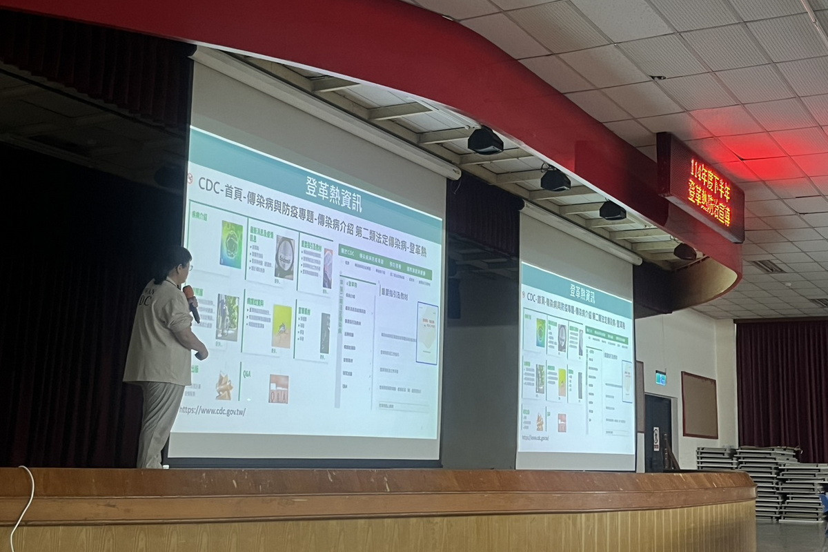 該活動邀請環境管理處蘆竹區中隊針對登革熱病媒蚊習性、常見孳生源及「巡、倒、清、刷」四大步驟進行講解,分享社區巡檢過程中的常見問題與改善策略。此外,由衛生局邀請疾病管制署江護理師透過「蚊子的一生」及傳染登革熱的臨床症狀與就醫指引,提醒民眾若發現自己或家人疑似感染登革熱,應如何及時就醫、正確通報與後續處理,以避免病情延誤及社區擴散。