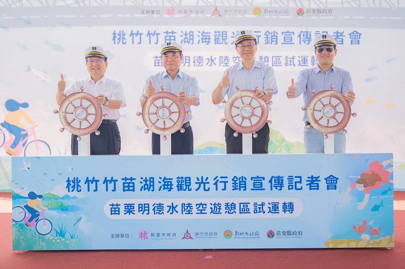 張善政談到,桃園鄰近國際機場,正積極推動國際旅客一日遊、兩日遊方案,吸引轉機旅客延長停留,體驗在地文化與自然景觀。未來將視成效延伸觀光路線至新竹與苗栗,形塑跨縣市整體觀光品牌。他強調,四縣市在湖海資源、文化底蘊與產業特色上各具優勢,透過聯合行銷可形成強大聚合效應,攜手打造北臺灣最具吸引力的觀光廊帶。