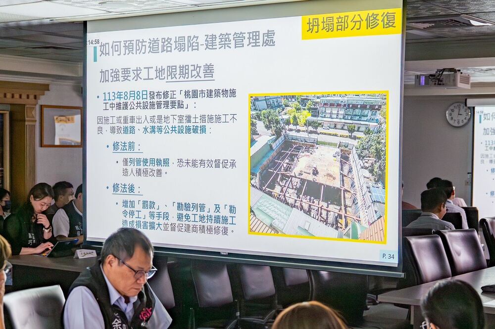 建管處說明,市府已於今年公告實施《桃園市建築工程辦理施工計畫諮詢會作業要點》,加強審查施工計畫及要求現勘,並逐步推動施工前後基地周邊進行透地雷達偵測。若發生坍塌事件,除要求工地限期改善外,也透過罰款、勘驗列管及勒令停工等方式,避免損害持續擴大。