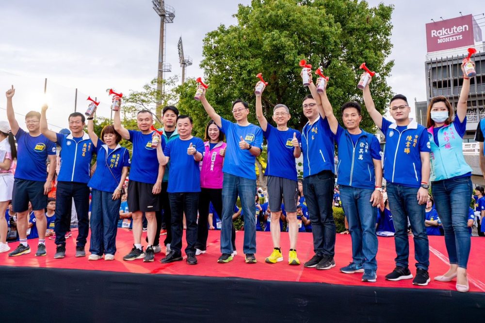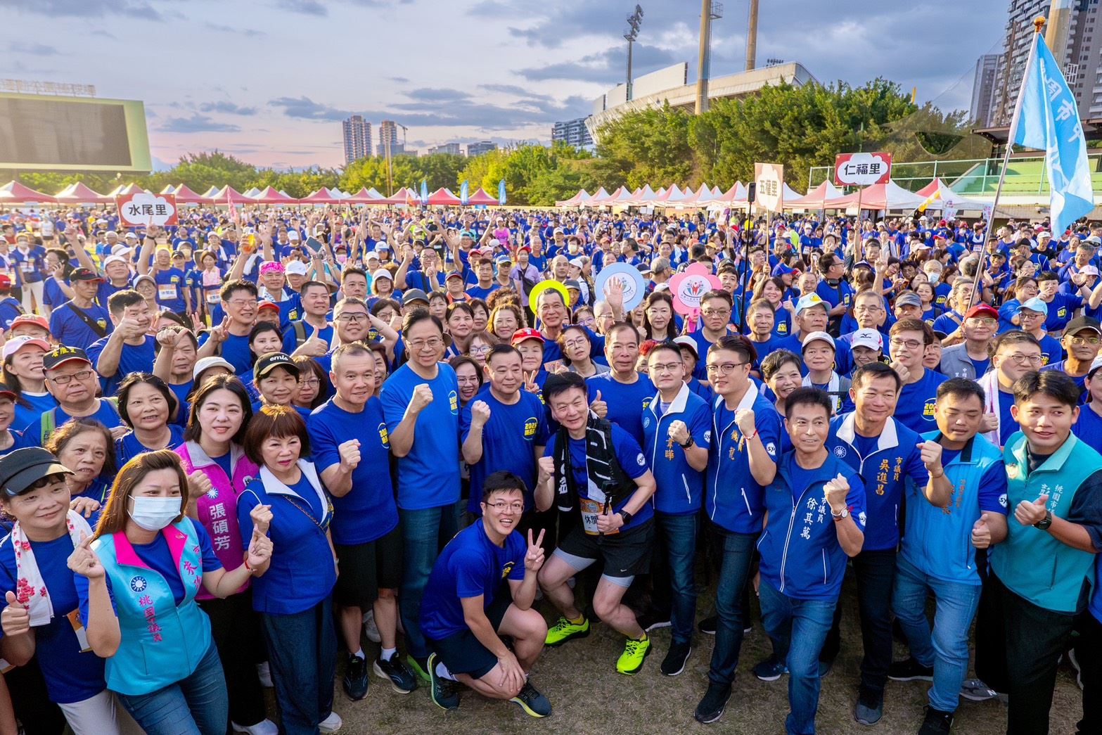 桃園市長張善政(右六)、副市長王明鉅(右五)、桃園市議會議長邱奕勝(前左五)、副議長李曉鐘(前左四)偕同市議員一同為比賽鳴槍,為所有參賽選手加油。
