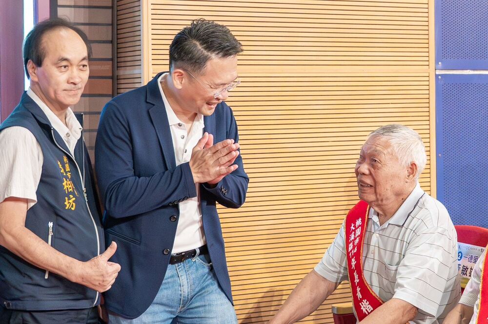桃園市副市長蘇俊賓與長青楷模親切互動。