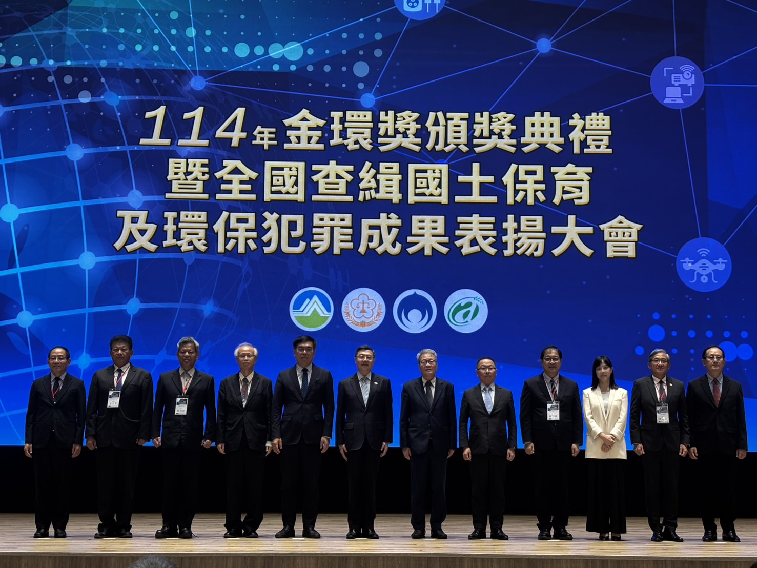 【記者吳世傑桃園報導】環境部今(29)日舉辦「114年金環獎頒獎典禮暨全國查緝國土保育及環保犯罪成果表揚大會」,邀集臺灣高等檢察署、內政部警政署、農業部林業及自然保育署等單位約200人出席。行政院長卓榮泰、法務部長鄭銘謙、臺灣高等檢署檢察長張斗輝及相關部會首長均到場勗勉,桃園地檢署檢察官盧奕勲偵辦永安漁港清淤商繞場跑空單詐取4000餘萬元一案,於會中獲得表揚。