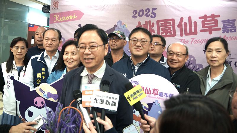 【記者徐玉英桃園報導】桃園市長張善政日前在市議員周玉琴、凌濤、市府農業局長陳冠義、文化局長邱正生、法務局長賴彌鼎、楊梅區公所主任秘書陳秋雪、桃園市農會總幹事周宗維、楊梅區農會理事長鄭美英、復興區農會理事長曾鴻姿、楊梅休閒農業區理事長曾德麟等人陪下,於市府1樓川堂出席「2025桃園仙草嘉年華宣告記者會」。