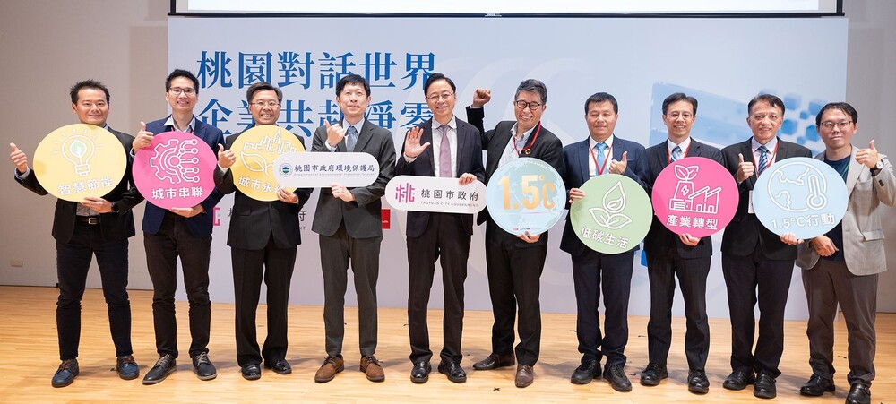 【記者徐玉英桃園報導】桃園市環保局日前在桃園市立圖書館總館舉辦「桃園企業 1.5°C 論壇暨授證儀式」,張善政市長親自出席授證儀式,表揚包含鴻海精密、遠東新世紀、躍登科技等32家企業。張善政肯定在地企業推動減碳、能源轉型及碳管理制度化,展現對全球升溫不超過1.5°C的行動承諾。
