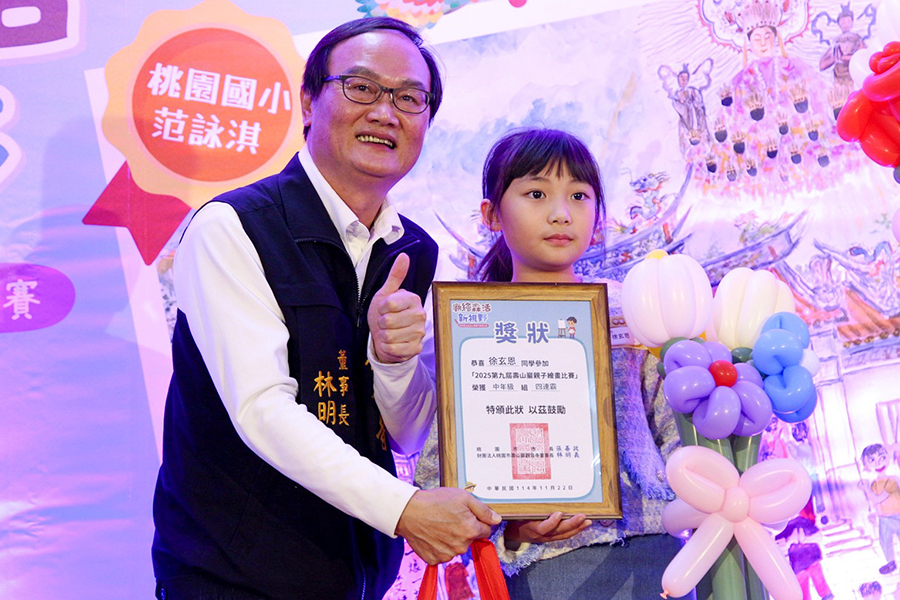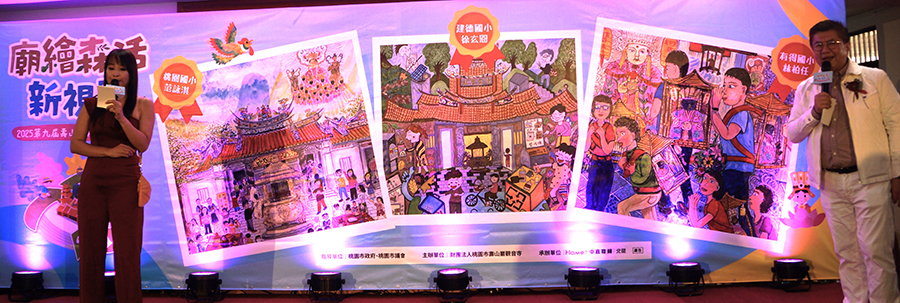 另外,今年唯一一位三連霸得主蔡凱樂,以觀音媽出巡繞境為主題,搭配親自設計的環保永續標語,宣導宮廟節能減碳,展現低年級少有的創作企圖。他表示會持續努力,期盼明年再挑戰四連霸,以及展望未來再創金牌連霸新紀錄