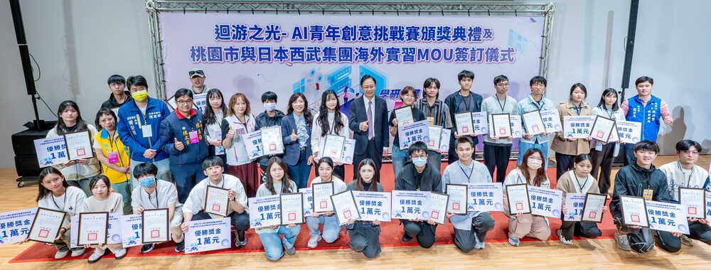 青年局表示,今年「洄游之光-AI青年創意挑戰賽」自7月開放報名以來,吸引逾百名青年參加。今日除了頒獎給在競賽上展現AI工具應用創意的優秀青年朋友們外,與西武集團的簽訂海外實習MOU,更是助力本市青年職涯發展的重要里程碑。期盼與日本西武集團旗下西武王子大飯店國際株式會社(SPW)及其子公司橫濱八景島株式會社的合作,開啟桃園青年赴日實習的新渠道,進一步拓展國際視野與競爭力,協助本市青年走向世界。