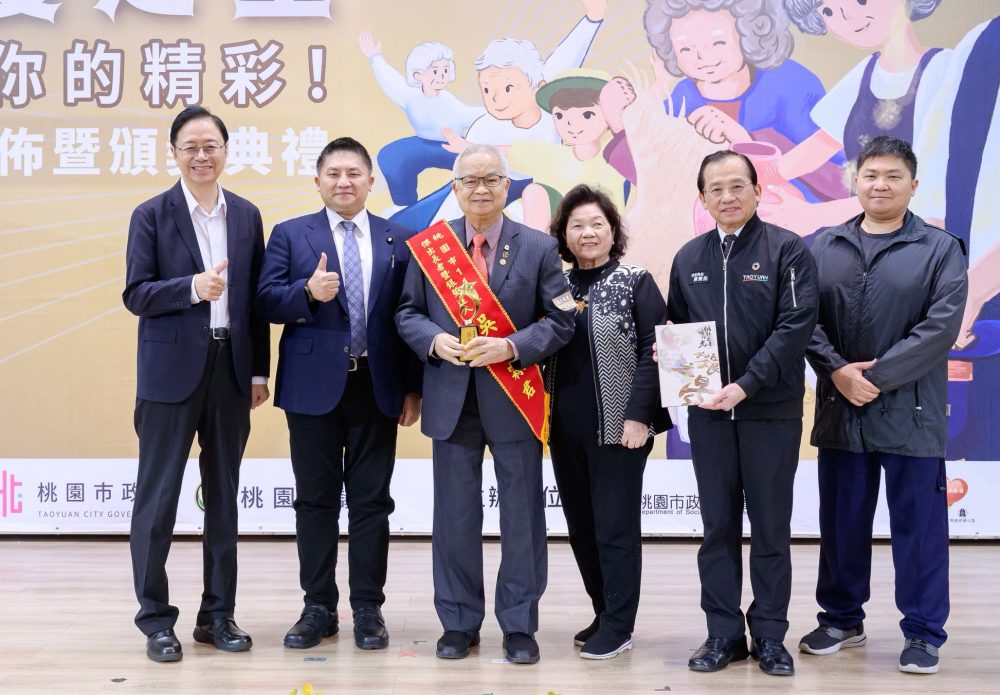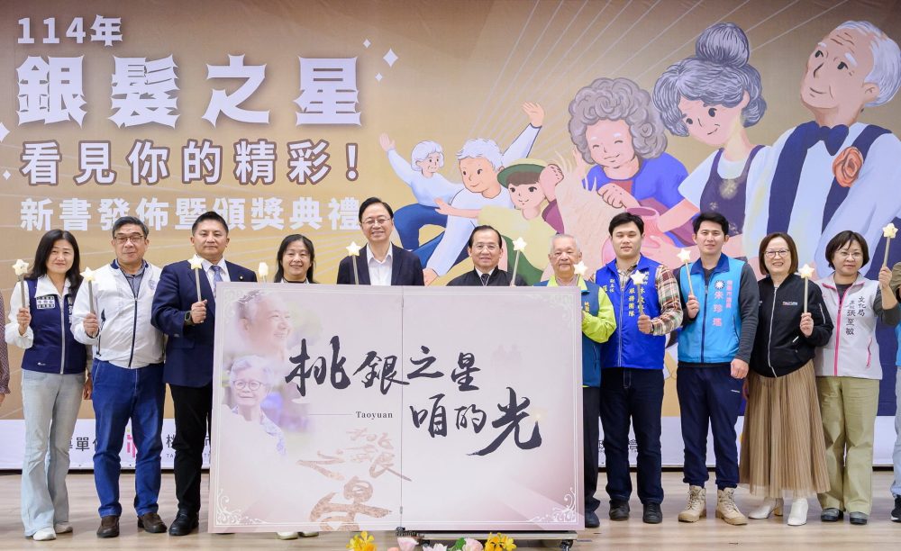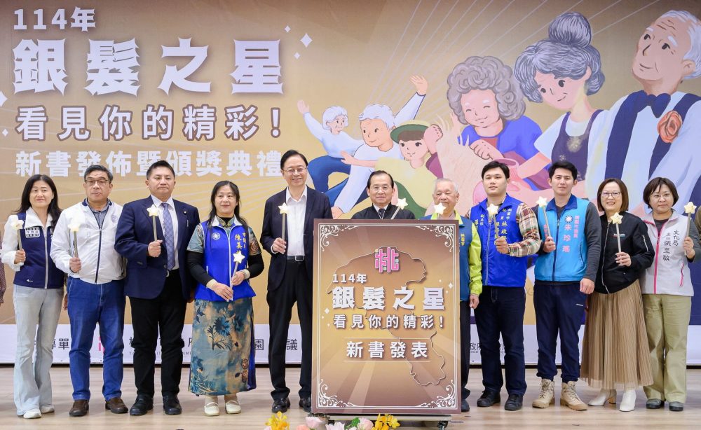 【記者鍾陽正桃園報導】桃園市政府於28日在市府綜合會議廳舉辦「114年銀髮之星新書發佈暨頒獎典禮」,由市長張善政親自頒獎表揚10位年度傑出長者與16位銀髮達人,同步發表銀髮生命故事記錄書籍「桃銀之星 咱的光」,場面溫馨歡樂。立法委員吳宗憲、市議員陳美梅、社會局長陳寶民、文化局主秘張至敏、桃園區長許敏松、桃園市老人會聯合會理事長劉文正、桃園市晉天文化發展協會理事長邱婉瑜等均出席活動。