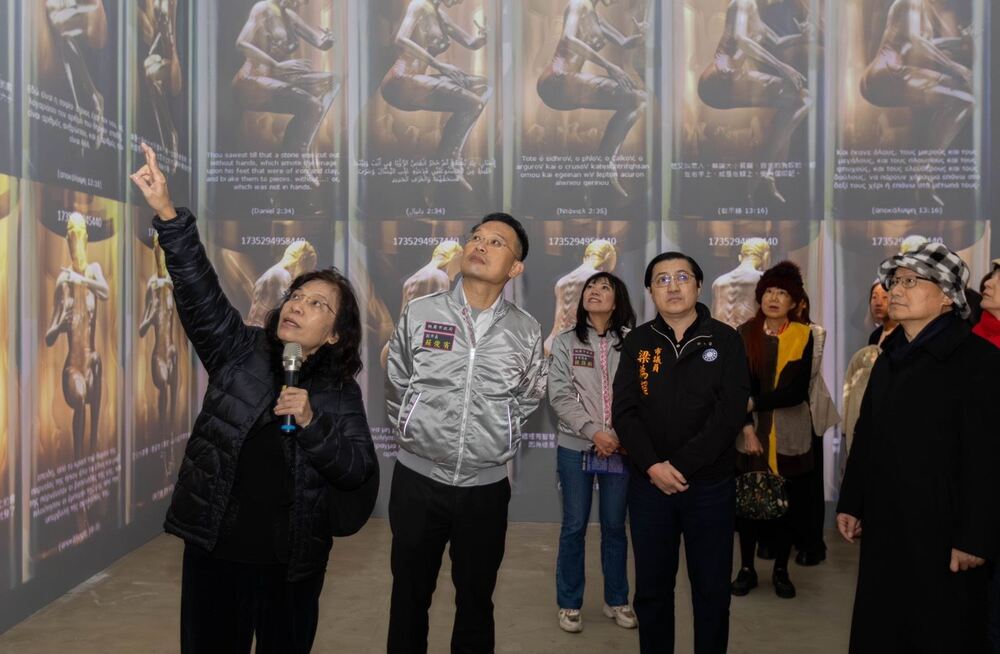 【記者徐玉英桃園報導】桃園市副市長蘇俊賓日前在市議員梁為超、市府文化局長邱正生、青年局長侯佳齡、桃園市立美術館長林詠能、中壢區長李日強、中原文創園區總監游冉琪、數位藝術家林珮淳、策展人石瑞仁等人陪同下前往中壢區,出席「夏娃克隆系列:林珮淳的AI伊甸園」開幕記者會。