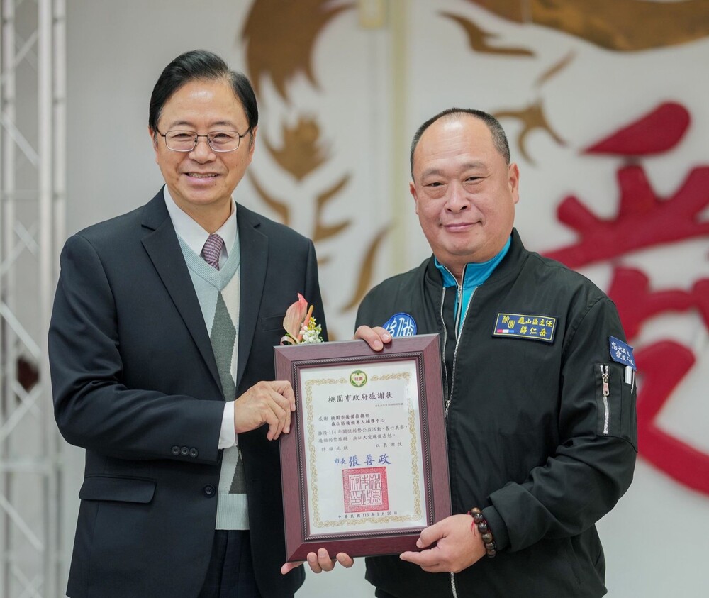【記者鍾陽正桃園報導】桃園市長張善政20日上午在市府民政局長劉思遠、國防大學校長唐華等人陪同下,前往大溪區出席「桃園市後備指揮部115年後備軍人晉任暨幹部表揚活動」。