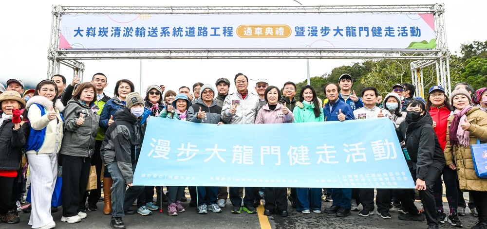 【記者吳世傑桃園報導】桃園市長張善政22日上午在立法委員呂玉玲、邱若華、市議員李柏坊、徐玉樹、張秀菊、張肇良、經濟部水利署北區水資源分署長謝明昌、經濟部水利署第十河川分署長陳健豐、市府水務局長劉振宇、龍潭區長鄧昱綵、大溪區長徐景揚、台灣電力股份有限公司新桃供電區營運處長蘇啟昌等人陪下,前往龍潭區出席「大嵙崁清淤輸送系統道路工程通車典禮暨漫步大龍門健走活動」。