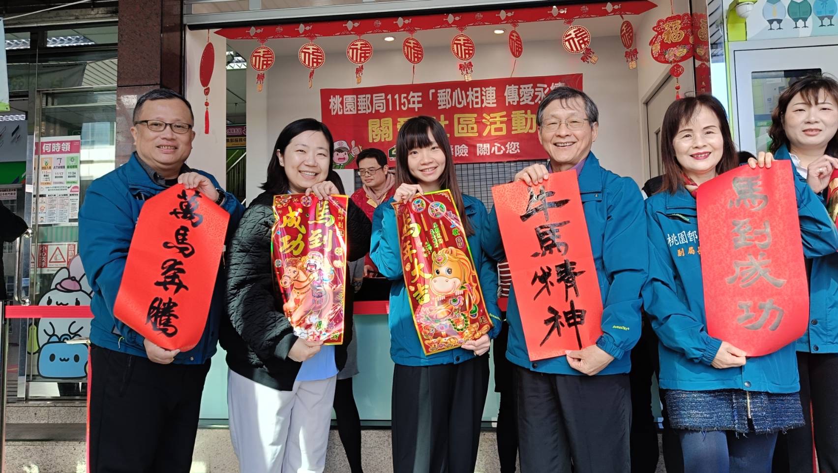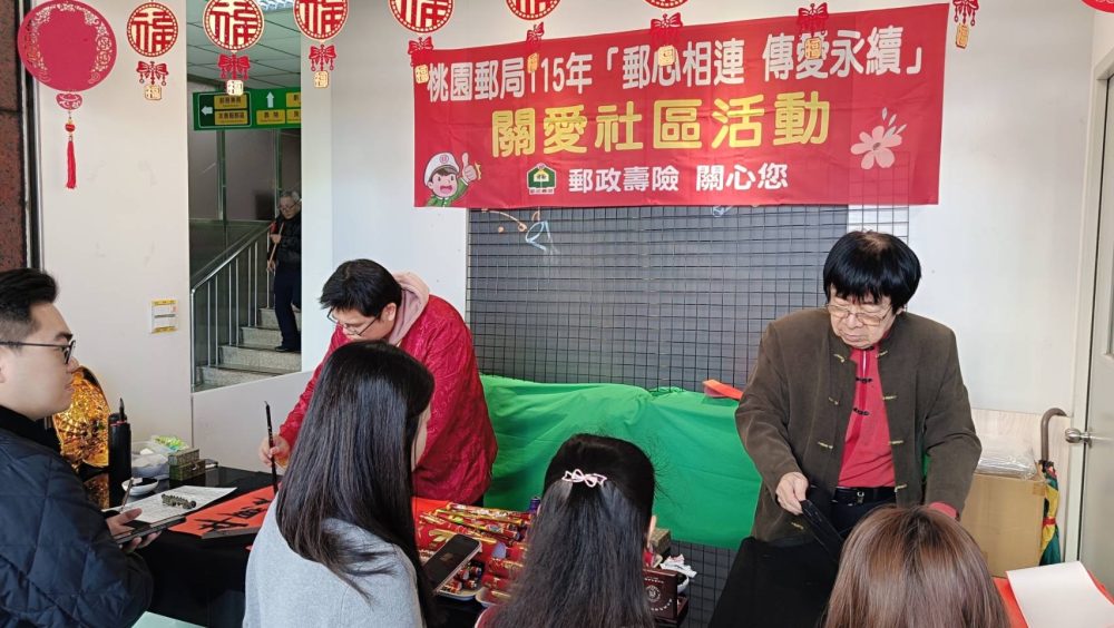 【記者吳惠民桃園報導】農曆春節即將到來,桃園郵局29日上午於桃園成功路郵局舉辦「郵心相連 傳愛永續」新春揮毫贈春聯活動,活動中特別邀請書法家許瑞龍老師及陳奕良老師現場揮毫,致贈現場民眾珍藏手寫書法春聯作品,桃園郵局局長吳進益親臨現場發送春聯及馬年新春小禮物向民眾拜早年,讓大家提前感受熱鬧的年節氣氛,並預祝大家2026年好運滿滿,事事如意。