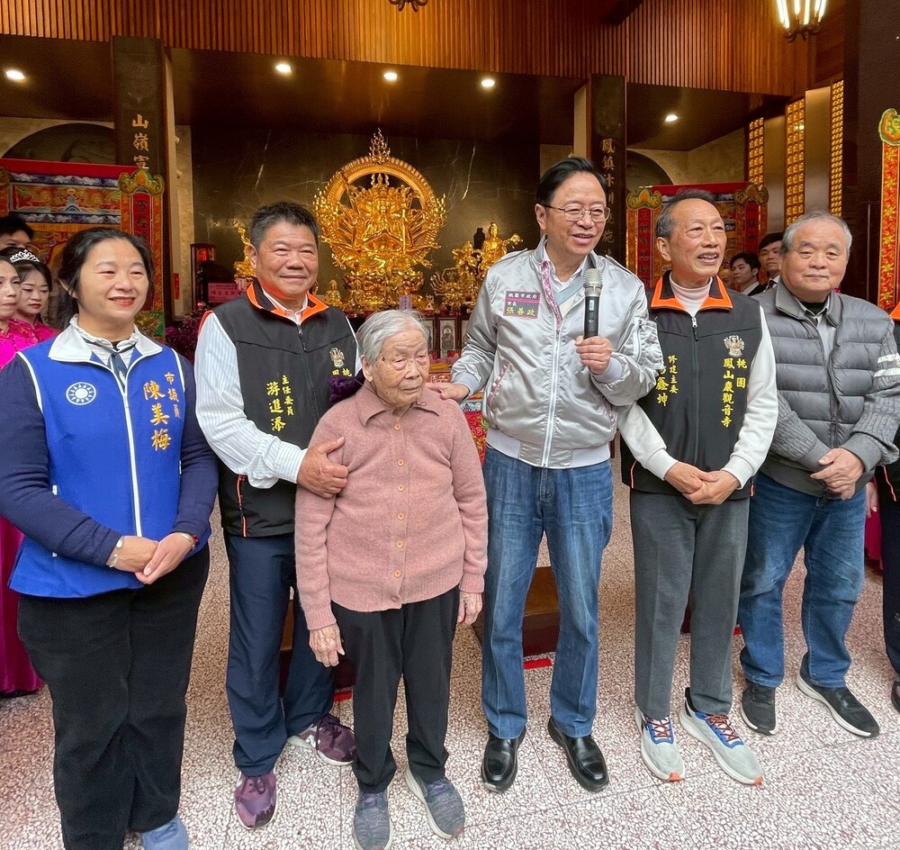 張善政指出,現場有位百歲人瑞特別前來共襄盛舉,與百年古剎見證歷史新頁,場面溫馨且具傳承意義。張市長除感謝修建主任委員楊鑫坤及主委游進添的付出,也期勉廟方繼續扮演地方信仰樞紐角色,引領信眾在桃園從事更多善行義舉,讓社會更加祥和安定。