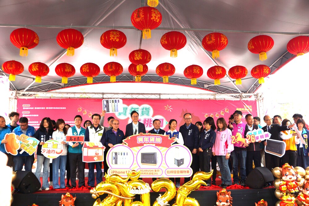 張善政表示,下禮拜馬上就要過年,許多市民朋友已開始採買年貨,桃園商圈與傳統市場匯集多元且物美價廉的優質商品,即日開始在藝文特區廣場有年貨大街,10日也會在中壢的銀河廣場啟動南區年貨大街,讓桃園鄉親朋友,還有外地的好朋友,各式年節所需皆能在桃園一次購足。此外,活動期間只要消費滿2,000元即可參加抽獎,有機會將iPhone 17等多項好禮帶回家,iPhone 17不是只有一支喔,共有10支,還有其他實用商品供抽獎,所以大家趕快來桃園買年貨,讓我們大家都體會到桃園最優質的商品和商圈,一同感受桃園年節熱鬧氛圍。