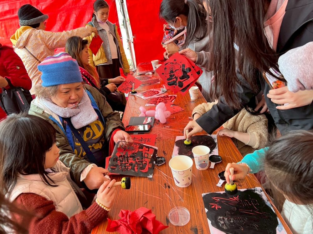 大樹林福德宮親子彩繪燈籠活動亦安排親子拓印春聯。(廟方提供)